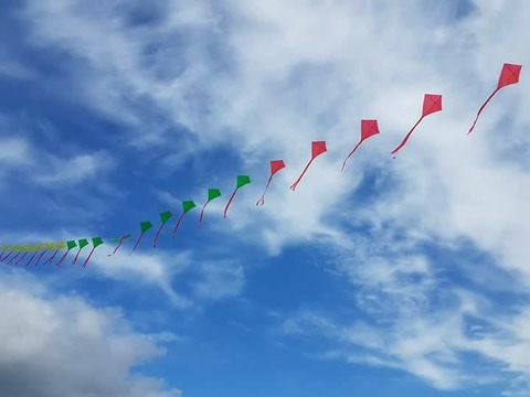 リトアニアの国旗の黄色、緑、赤を使ったカラフルな凧です。
