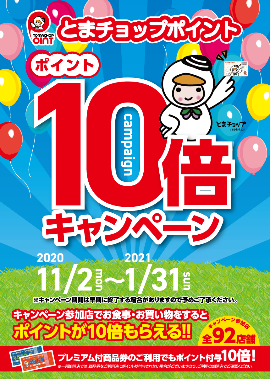 とまチョップポイント10倍キャンペーン参加店です。