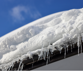 | 雨樋が雪の重みで外側に広がったり、歪んだりしている | ||