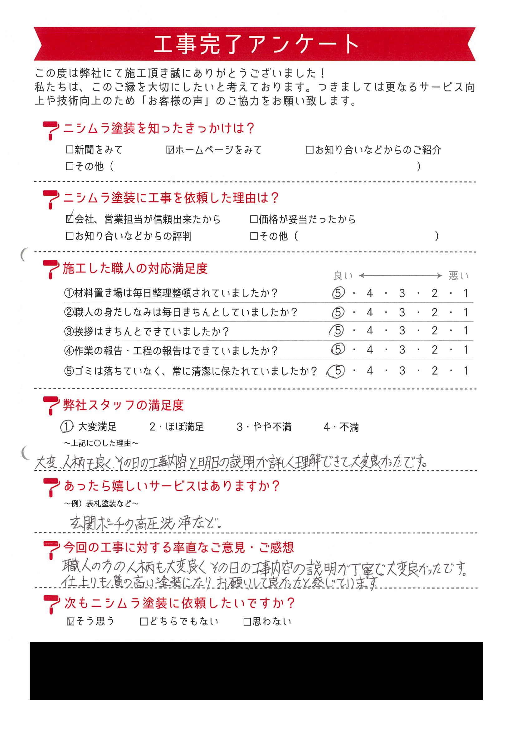 職人の方の人柄も大変よく、その日の工事内容の説明が丁寧で大変良かったです。